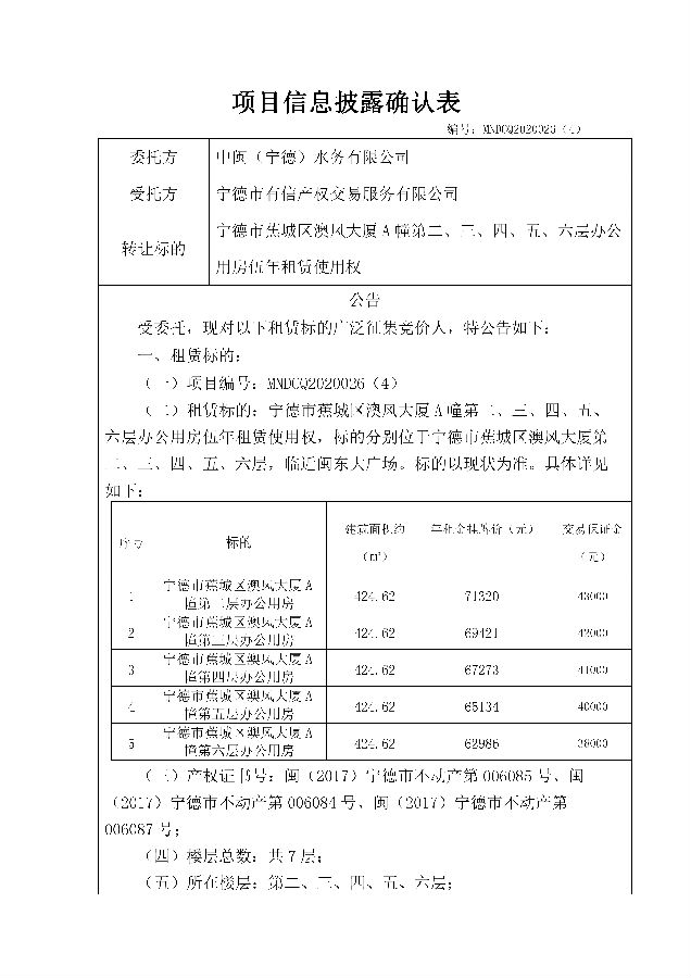 項(xiàng)目信息披露確認(rèn)表 編號(hào):MNDCQ2020026(4)